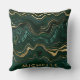 Dark Green Malachite and Gold Foil Strata Veining Throw Pillow
