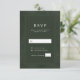 Simple classic dark hunter green and white modern minimalist typography wedding invitation RSVP card on a vintage distressed-looking background. +++++++++++ The invite is suitable for an elegant classy formal wedding ceremony and reception.