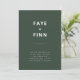 Simple, stylish wedding suite in a modern minimalist scandi scandinavian design style with a contemporary typography in white on a dark moss forest green background in an informal casual style. The text can easily be personalized for a unique one of a kind design for your special day. If you need any help customizing this product, please contact me using the message button below and I'll be happy to help.