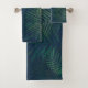 Dark Green Palm Leaves Bath Towel Set – Tropical Botanical Bathroom Towels