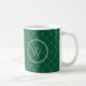 Elegant winter holidays gift, dark green plaid pattern, round frame personalized monogram, christmas green checkers tiles