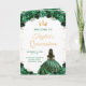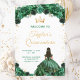 This elegant and glamorous Quinceañera program features a beautiful princess with dark hair in a dark green ball gown. The text combines handwritten script and modern sans serif fonts for a classy and sophisticated look. The floral arrangements and gold confetti create the perfect blend of rustic and chic.
