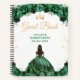 This elegant and glamorous Quinceañera guest book features a beautiful princess with dark hair in a dark green ball gown. The text combines handwritten script and modern sans serif fonts for a classy and sophisticated look. The floral arrangements and gold confetti create the perfect blend of rustic and chic.