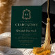 Dark Green Rose Gold Crest Graduation Party Foil Invitation