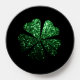 Dark Green sparkly Shamrock on black. Dark Green glitter sparkles Shamrock Clover on custom black background. Saint Patrick's day gift: five leaf shamrock clover with dark green sparkles glitters. Photo of sparkles glitter!
