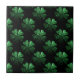 Dark Green sparkly Shamrock pattern on black Ceramic Tile