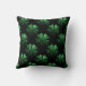 Dark Green sparkly Shamrock pattern on black Throw Pillow