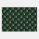Dark Green sparkly Shamrock pattern on black Wrapping Paper Sheets
