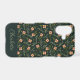 Modern and elegant iPhone case design featuring pattern that has hand painted watercolor small pink flowers and green foliage on a dark green background. Can be personalized with a name.