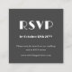 Looking for the perfect wedding RSVP card? Look no further! Our compact customizable modern wedding RSVP card features stunning white art deco-style typography that is sure to impress your guests. With a dark grey background, you can easily include your own custom text to make it truly unique. On the reverse, create a brand new QR code that links directly to your wedding website for easy access and convenience. Go the the "personalize" option, add your wedding website URL to the area provided, and a QR code will generate on the design just for you. Order now and let the RSVPs start rolling in!