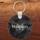 Dark grey black geometric mesh pattern Monogram Keychain