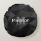 Dark grey black geometric mesh pattern Monogram Round Pillow