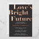 Celebrate your next chapter with this elegant “Love’s Bright Future” foil engagement invitation. Featuring striking copper and white typography on a rich dark grey background, this design blends modern sophistication with heartfelt promise. Ideal for couples seeking a refined, memorable announcement—fully customizable with names, dates, and venue details to make your special moment truly yours