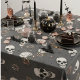 Dark Grey Gothic Skulls and Roses Halloween Tablecloth