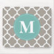 Dark Grey Monogram Pink Quatrefoil Pattern Mouse Pad