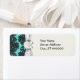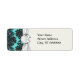 dark grey on aqua blue flourish damask pattern label