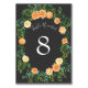 Dark Grey Peach Wedding Modern Floral Table Number