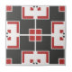 This ceramic tile is a beautiful blend of modern design and geometric precision. The base color of the tile is a muted grey, providing a neutral backdrop for the bold red and white geometric shapes that adorn it. These shapes form an abstract pattern that is reminiscent of digital art or retro video game graphics, giving the tile a unique, contemporary feel. The design is symmetrical, with similar patterns mirrored across both the horizontal and vertical axes. This symmetry, combined with the dynamic arrangement of shapes in each quadrant, creates a visually striking effect that is both cohesive and engaging.