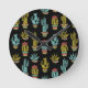 Dark Grunge Cactus Pattern Round Clock
