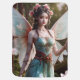 Pretty spring fairy baby blanket. The fairy is wearing a green dress with a red belt, and pink flowers in her hair.