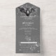 AVAILABLE WITH A QR CODE OR WITH OR WITHOUT DINNER SELECTION OPTIONS. Step into the enchanting realm of our Halloween wedding invitation, where love meets glamorous mystery in a spellbinding celebration. Against a backdrop of bewitching charcoal gray, this invitation sets a dazzling yet dark tone for your special day. A softly glittered bat with wings spread sits atop your wedding details, surrounded by a cluster of sparkling loose diamonds, adding glam to the dark beauty of the design. Capture the spirit of Halloween and set the stage for a wedding that's as hauntingly beautiful as it is unforgettable. Choose our Halloween wedding invitation to embark on a journey into the shadows and create memories that will last a lifetime. Created by Simply Farmhouse Press.