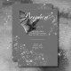 Step into the enchanting realm of our Halloween wedding reception card, where love meets glamorous mystery in a spellbinding celebration. Against a backdrop of bewitching charcoal gray, this design sets a dazzling yet dark tone for your special day. A charcoal bat with wings spread sits atop your wedding details, surrounded by a cluster of sparkling loose diamonds, adding glam to the dark beauty of the design. Capture the spirit of Halloween and set the stage for a wedding that's as hauntingly beautiful as it is unforgettable. Choose our Halloween wedding invitation suite to embark on a journey into the shadows and create memories that will last a lifetime. Created by Simply Farmhouse Press.