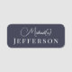 Elevate your identity with our beautiful customizable name tag. Boasting a dark indigo blue background, this design offers a modern yet understated elegance. Your name is showcased in a classy handwritten style, while your surname stands strong in bold uppercase letters below. Whether it's a business meeting or a friendly gathering, this name tag adapts to any environment. A blend of sophistication and style, it's the perfect accessory for those who want to make a lasting impression.