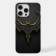 Bat symbol phone case, Batman logo cover, Dark Knight case, gold and black phone case, superhero phone case, DC Comics fan gift, gothic aesthetic phone case, embossed bat design, leather texture case, sleek black phone accessory, protective phone cover, vigilante gear, luxury phone case, comic book merchandise, cool phone case, iPhone 15 Pro Max case, Gotham City style.