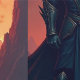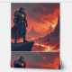A dark knight — a mysterious fantasy warrior from the burning lands, surrounded by lava and a hellfire landscape. This armored fighter is a true skull warrior, reigning over an epic fantasy and fantasy realm. Full of evil and power, he roams a land filled with fire and volcanic mountains.