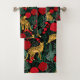 Exotic jungle print on a black background. Especially beautiful with red roses.