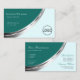 Dark Light Teal with Silver Decor and Logo Stylish Business Card