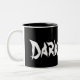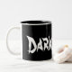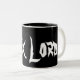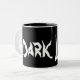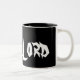 Black Mug that says Dark Lord in White lettering with a white rim.