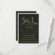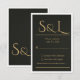 Complete your black tie wedding stationery with this ultra-luxurious black and gold RSVP response card. Featuring an elegant oversized monogram in antique gold on deep matte black, every detail of this card signals sophistication and formal elegance.
