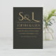 Make a dramatic first impression with this ultra-luxurious black and gold wedding invitation. Featuring an elegant oversized monogram in antique gold on deep matte black, this design is perfect for formal, black tie, and evening wedding celebrations.