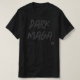 DARK MAGA print on this classic black best value t-shirt in Sizes S to 3X. Upgrade to basic for $1.15 more for sizes to 4XL. Easily change the subtle initials, add name or remove using the Template provided. A grunge font is used for the dark grey text print. Other t-shirt styles and colors available. Details say "Fits true to size" but I recommend upsizing for comfort. See "About This Product" at side for more information and care.