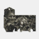 Black and white Gothic image of a masquerade collection on tent favor boxes.