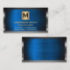 Dark Metallic Frame | Blue Metallic Background Business card.