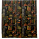Sophisticated mid-century geometric pattern shower curtain featuring layered circles, arches, triangles, and rectangles in forest green, burnt orange, ochre, and cream on a black background. Rich textures and retro-modern shapes create a bold design ideal for Bauhaus lovers, vintage décor fans, and anyone drawn to moody modern style.