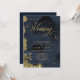 Dark Midnight Blue, Gold Painterly Wedding Invitation