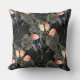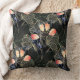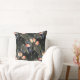Dark Modern Elegant Boho Floral Black Throw Pillow