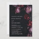 This elegant dark moody floral wedding invitation features purple and red peony flowers on a black background. Dark romantic aesthetic wedding invitation. With a scannable qr code and 3 photos on the backside.