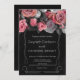 Dark Moody Black Pink Florals Invitation.