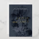 Elegant dark moody wedding foil invitation template with botanical overlay artwork in dark blue, couple's names pressed in real gold foil. Shades of very dark blue and black give this wedding stationery design a unique and sophisticated feel. This is a fully customizable wedding template.