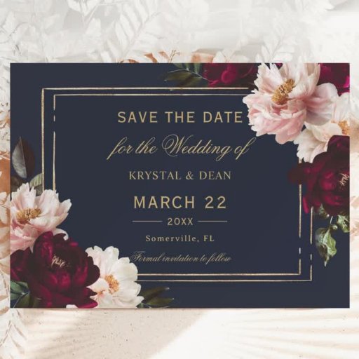 Dark Moody Burgundy Blush Navy Blue Floral Wedding Envelope