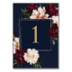Dark Moody Burgundy Blush Navy Blue Floral Wedding Table Number