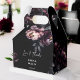 Dark moody noir elegant gothic burgundy flowers wedding favors personalized favor box, black burgundy peonies on dark background wedding template favor box