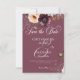 Indulge in the captivating allure of our dark and moody burgundy wedding save the date card, where sophistication meets romance in a harmonious blend of color and elegance. Against a backdrop of rich burgundy, this design sets a dramatic tone. Your details take center stage, surrounded by a lush arrangement of watercolor poppies, zinnias, and other flowers in shades of navy blue, burgundy, soft blush, and gold, complemented by dark sage green foliage. Each petal and leaf whispers tales of passion and enchantment, setting the stage for a celebration that's as memorable as it is magical. Created by Simply Farmhouse Press.