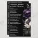 Dark moody boho elegant gothic wedding program order of events, black purple peonies on dark background wedding program