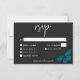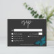 Dark Moody Minimal Teal Moth Wedding Dinner RSVP Card