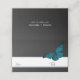 This wedding table place card design features a dark, moody theme that is simple, yet stunning. A dark charcoal black background is the perfect canvas for a single teal blue moth, its wings spread for flight. The back holds the couple's first names and wedding date. Unique and elegant, this design can be used for any season. Created by Simply Farmhouse Press.